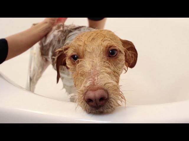 - Druppel daarna de shampoo over de vacht en op de handen.