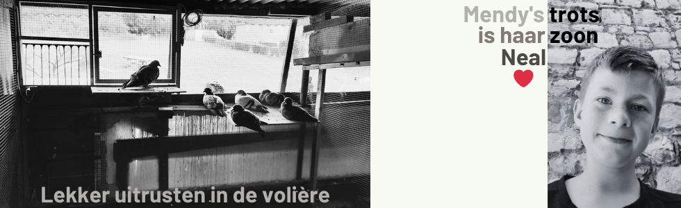 Hieronder zie je aan de rechterkant Mendy’s allergrootste trots, dit is haar zoon Neal. En aan de linkerkant alvast een ‘kleine’ greep uit haar grote en gezellige beestenbende: